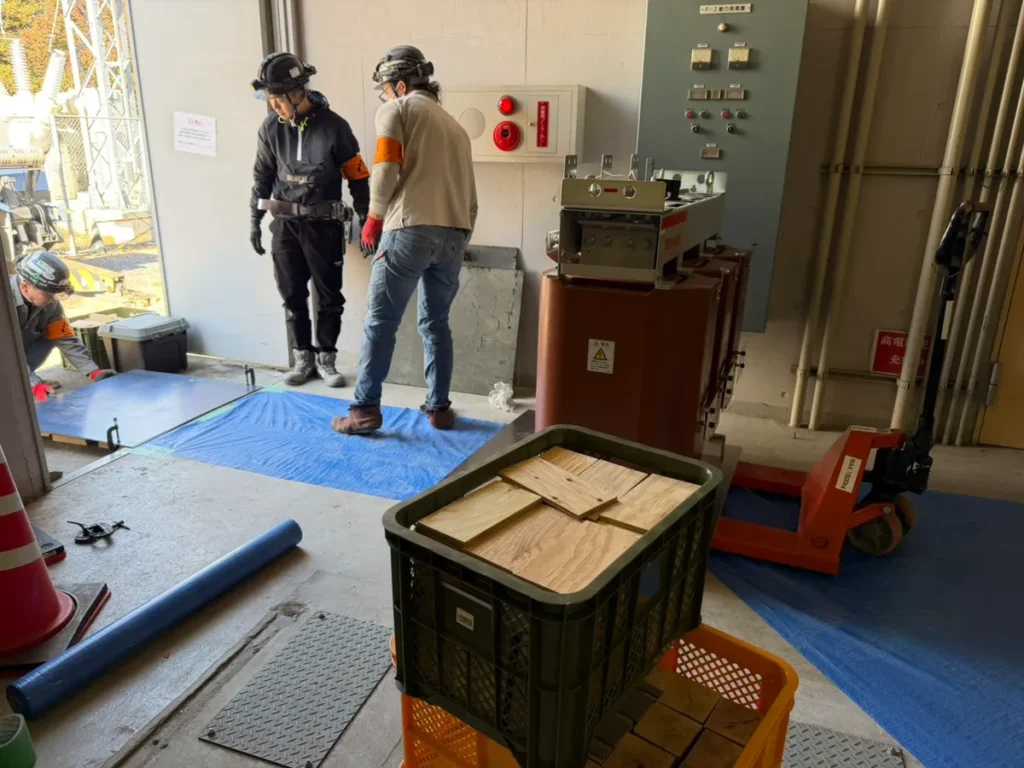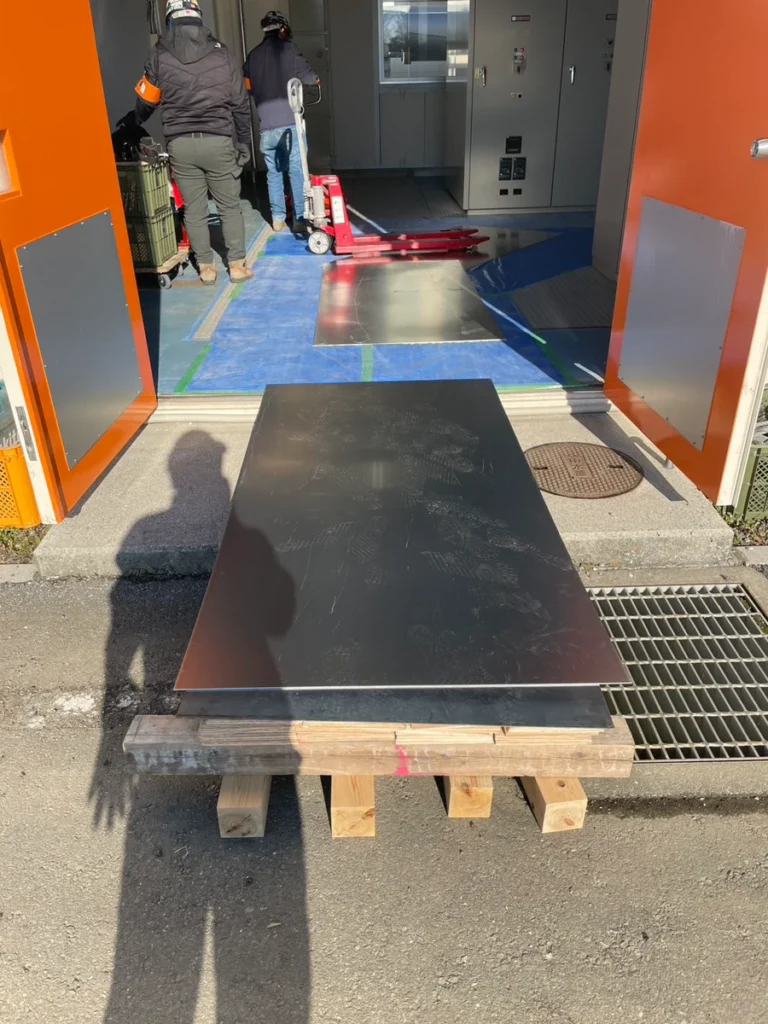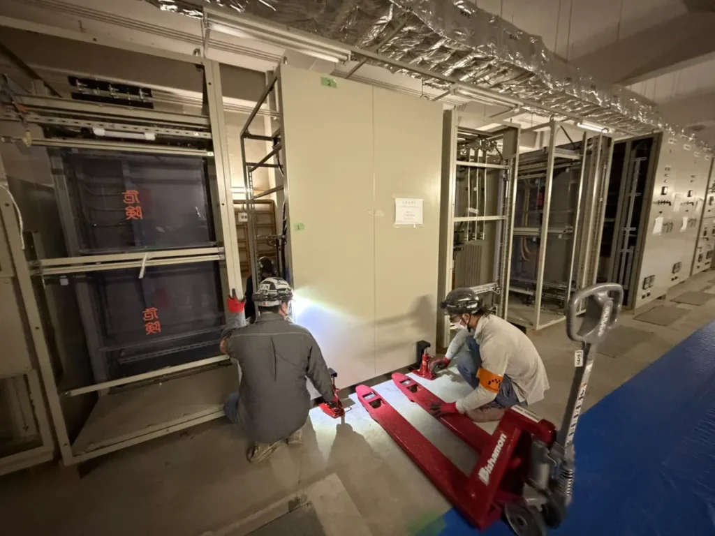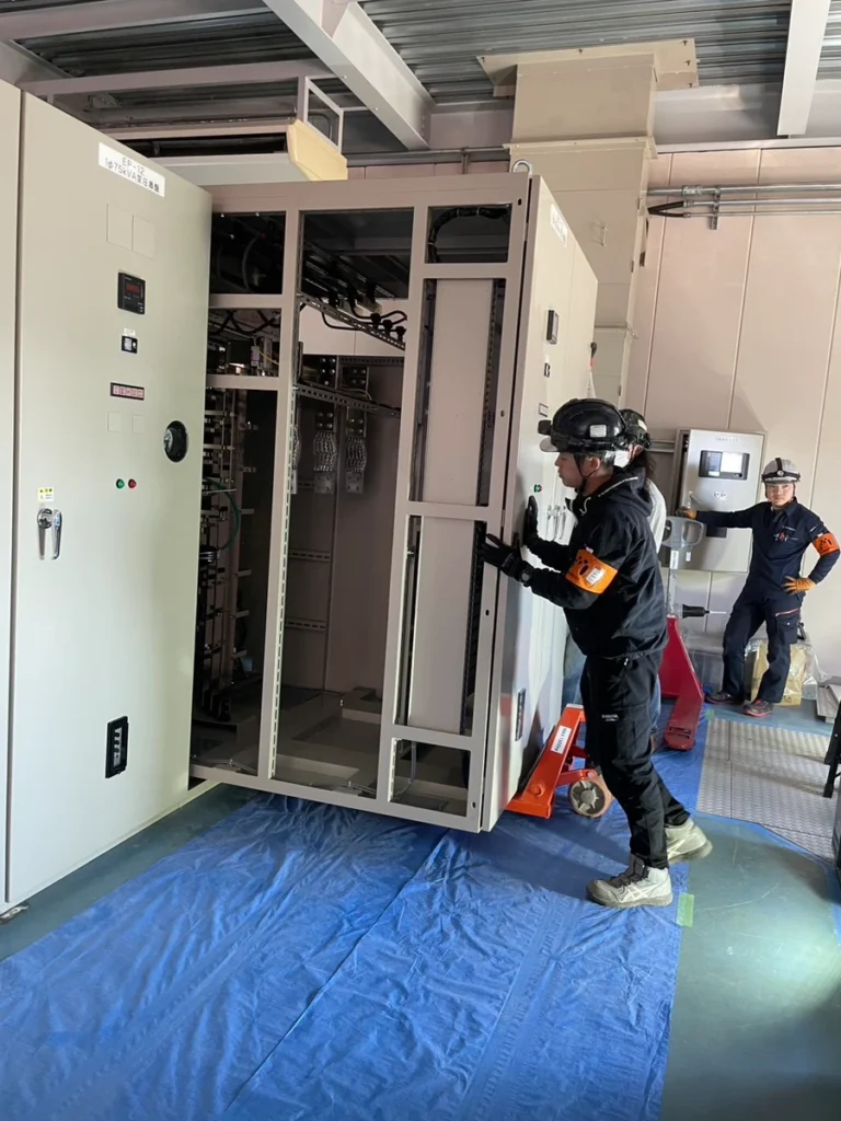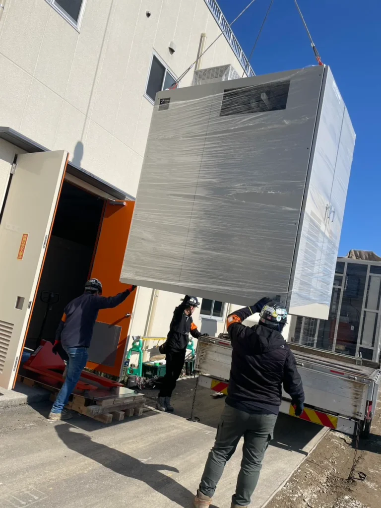 しかし、電気盤などの重量物を搬出する作業は専門の機材や技術が必要で、自社だけでは対応が難しい状況でした。加えて、搬入・搬出作業に伴う手待ち時間(待機時間)をできるだけ短縮し、工程全体の効率を上げたいというご要望もお持ちでした。